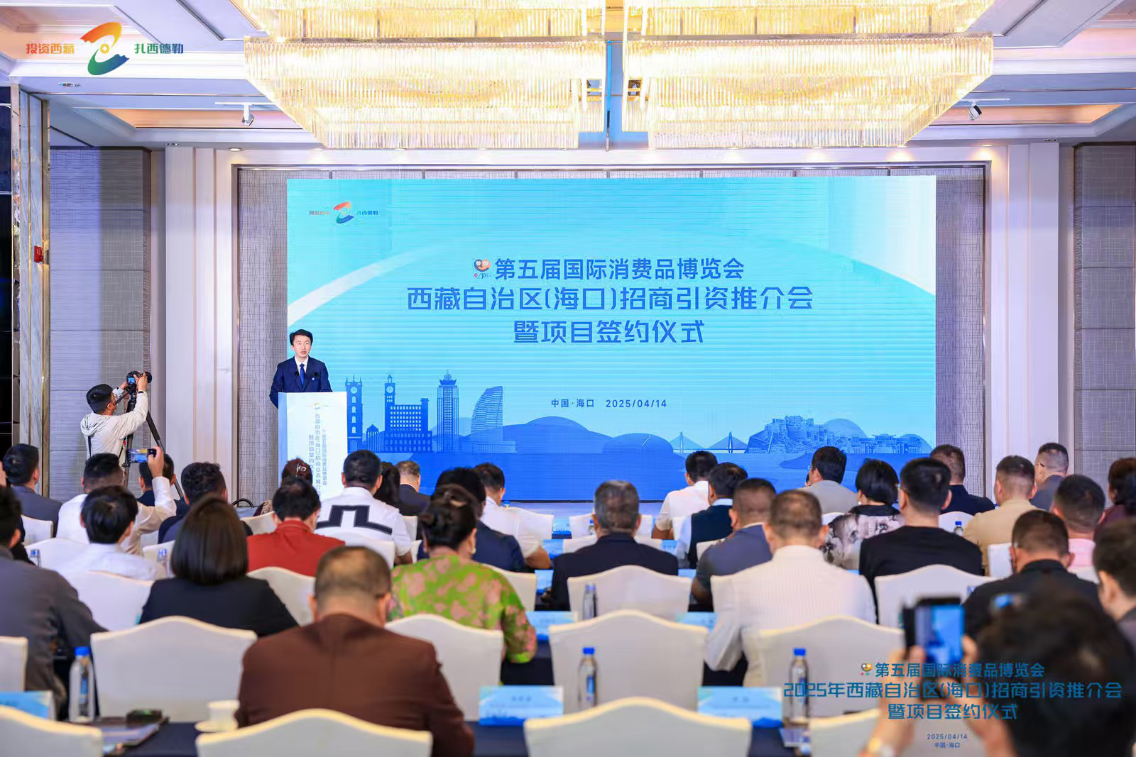 招商引资推介会暨项目签约仪式现场火热。本次推介会邀请了海南省优质企业60余家,100余企业人士参会。会上,西藏自治区人民政府赵鹏副主席详细介绍了西藏发展现状和投资机遇,日喀则、昌都市投资促进局作了地市投资环境推介,拉萨经开区、吉隆边合区推介了高新数字、边贸物流等领域引入社会资本投资项目,中国农业银行西藏分行作了金融政策推介。