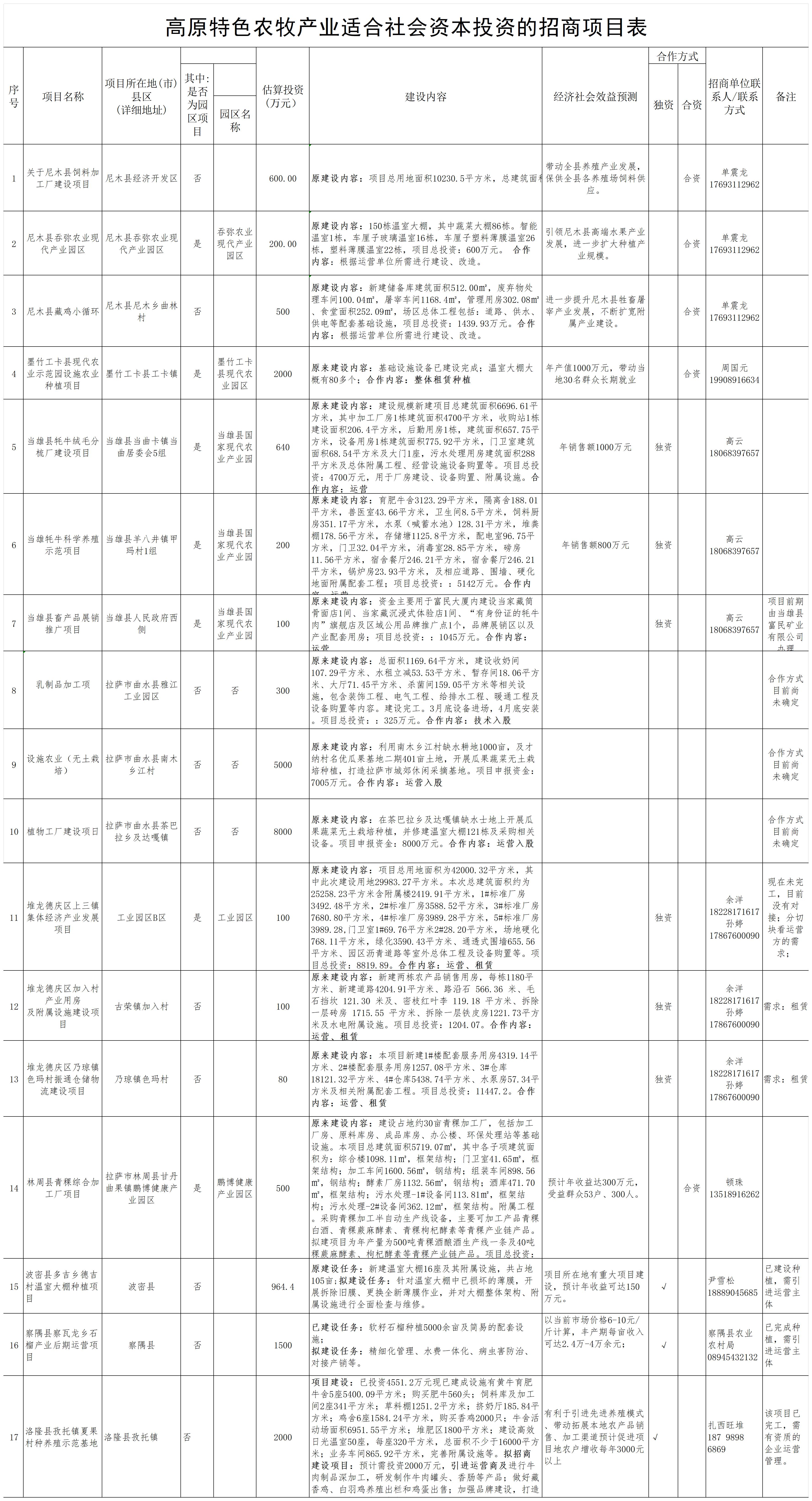 2025年西藏自治区适合社会资本投资招商项目(高原特色农牧产业类项目)